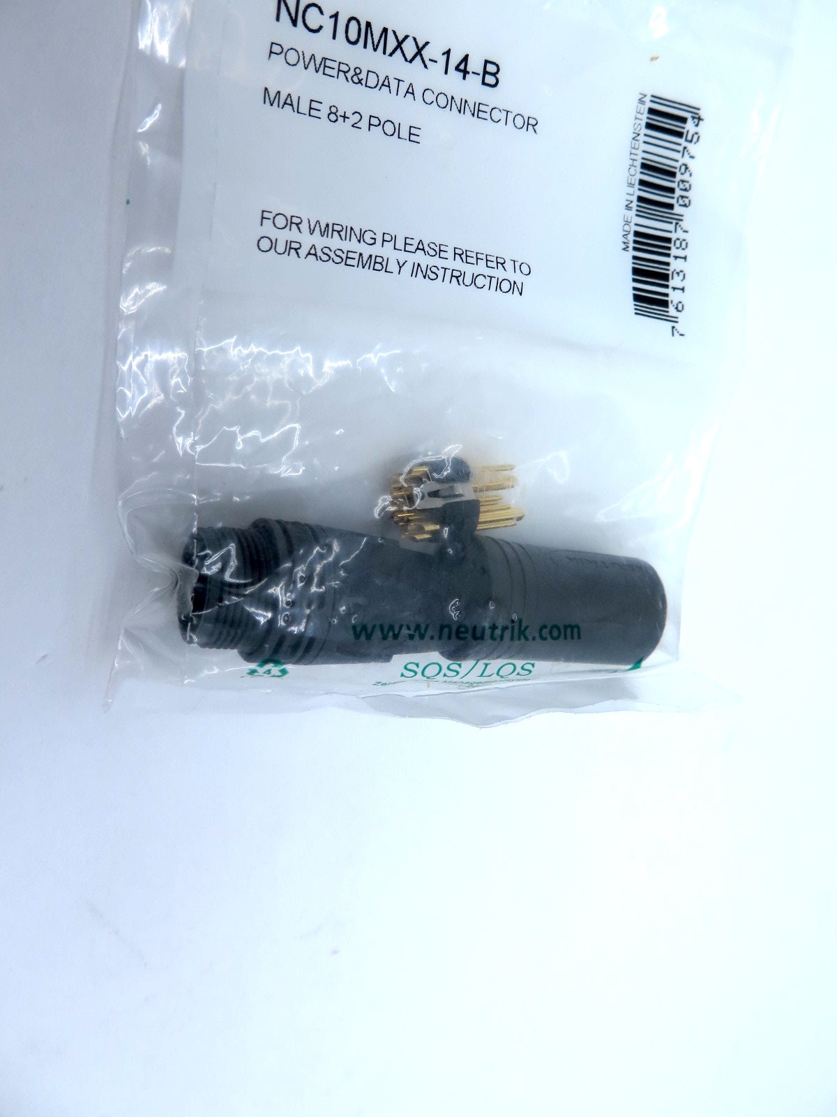 Specifications: Easy to assemble 8 + 2 pole male XLR connector, black chrome metal housing, secure locking and proven Neutrik chuck type strain relief